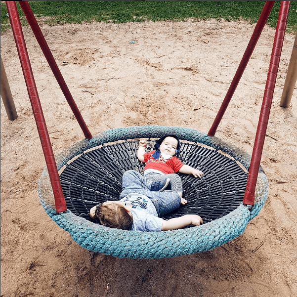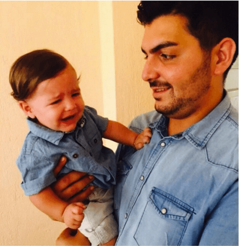 Papa und Sohnemann im Jeansoutfit