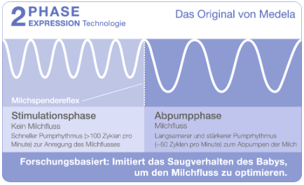 Bei der 2-Phasen Expression-Technologie handelt es sich um eine Pumptechnologie, die den natürlichen Saugrhythmus des Babys nachahmt. Die Vorteile der 2-Phasen Expression: