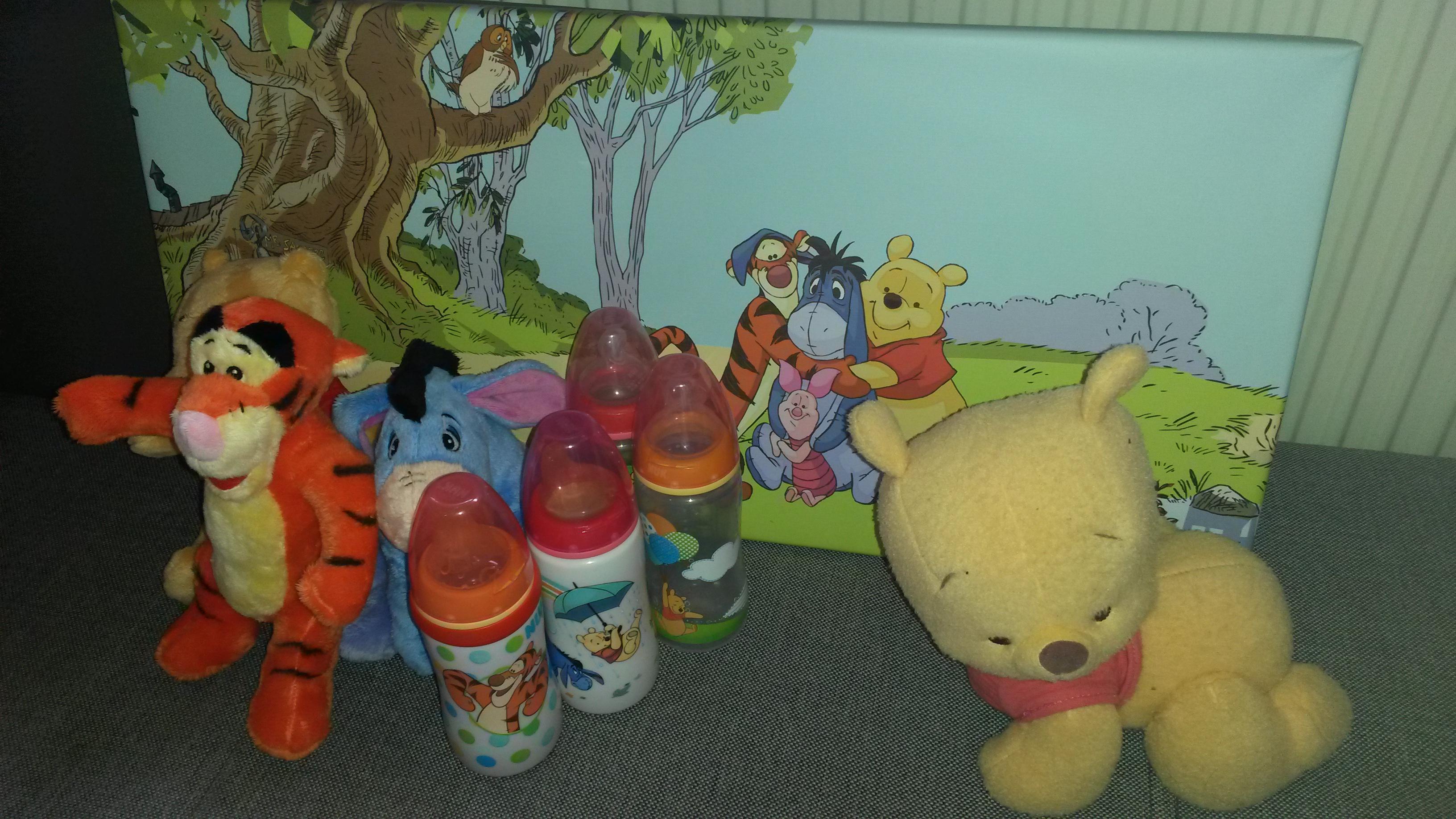 Meine tochter liebt winnih pooh sie hat vier falschen drei kuscheltiere von winnih pooh tigger und esel eine fotoleinwand und den krabbel baby sie hat nächsten monat Geburtstag und bekommt noch mehr leinwände wurden uns freuen von euch zuhoren :)