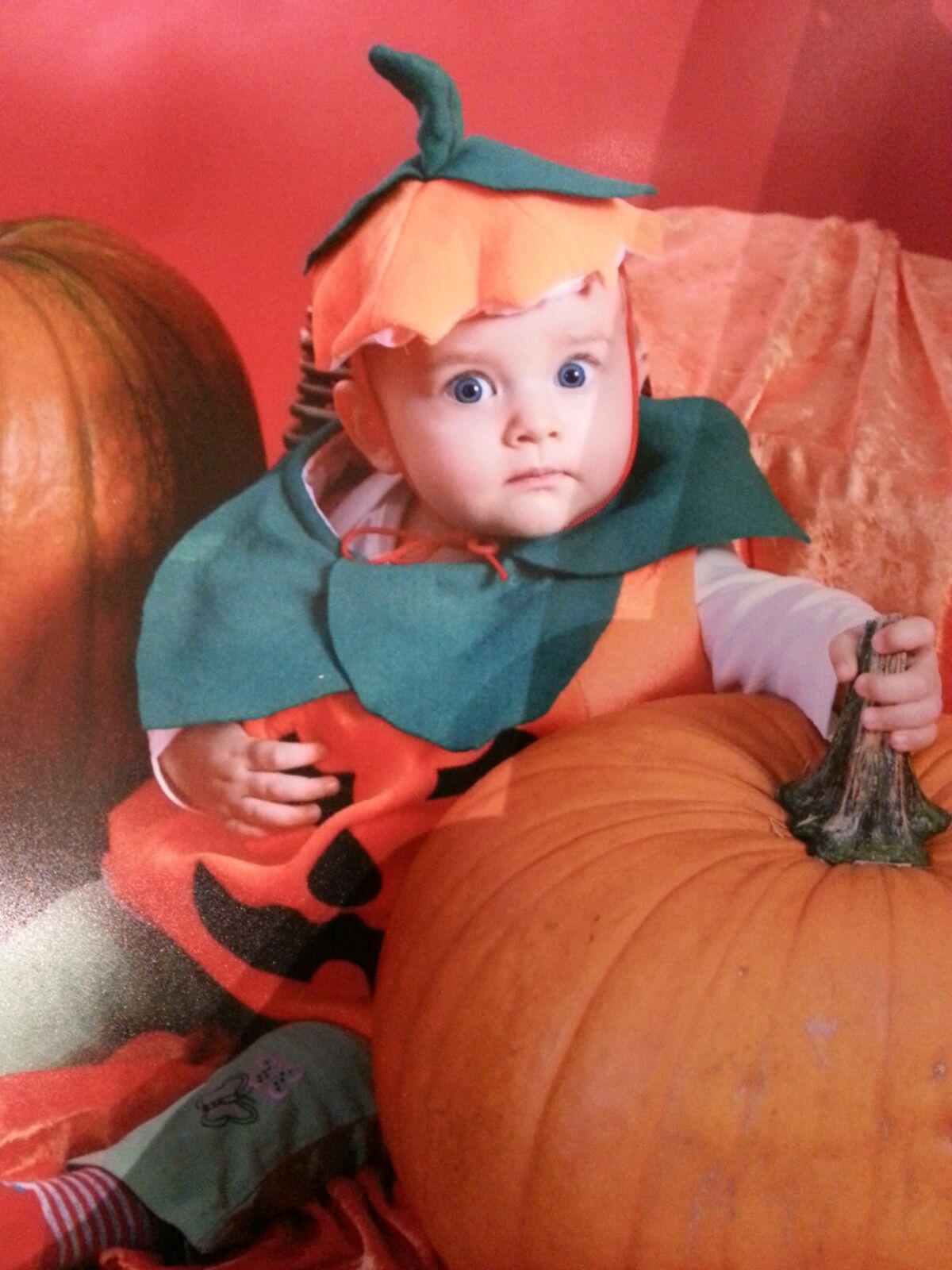 Bella im Halloweenkostüm als Kürbis 2016