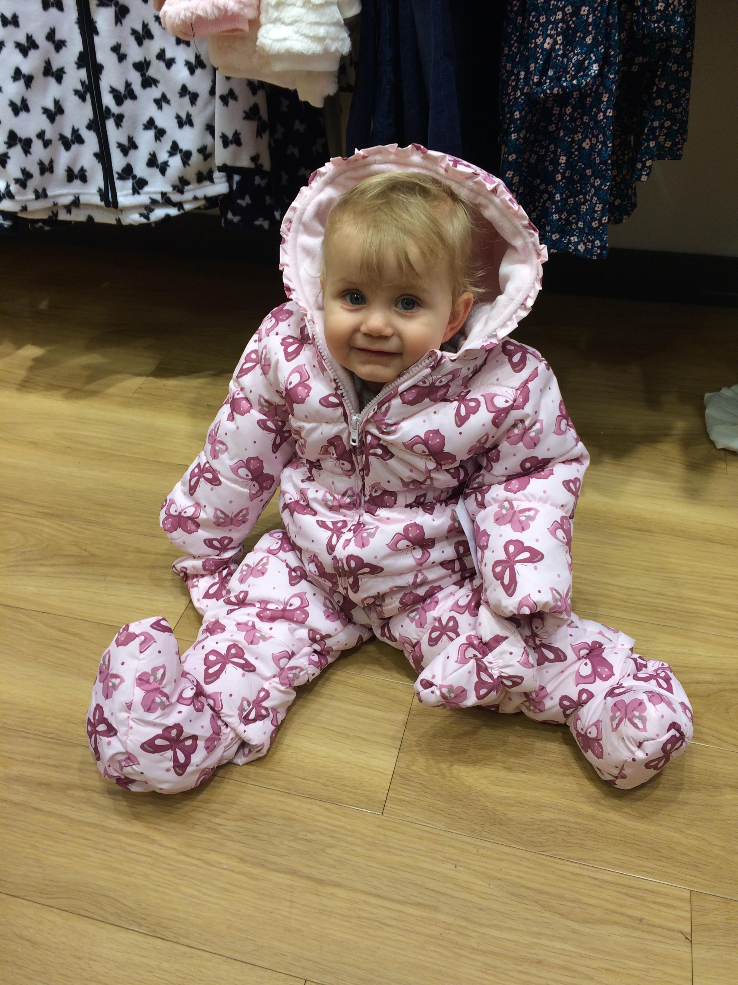 Mia ist 14 Monate alt und lacht, sobald sie eine Kamera sieht.