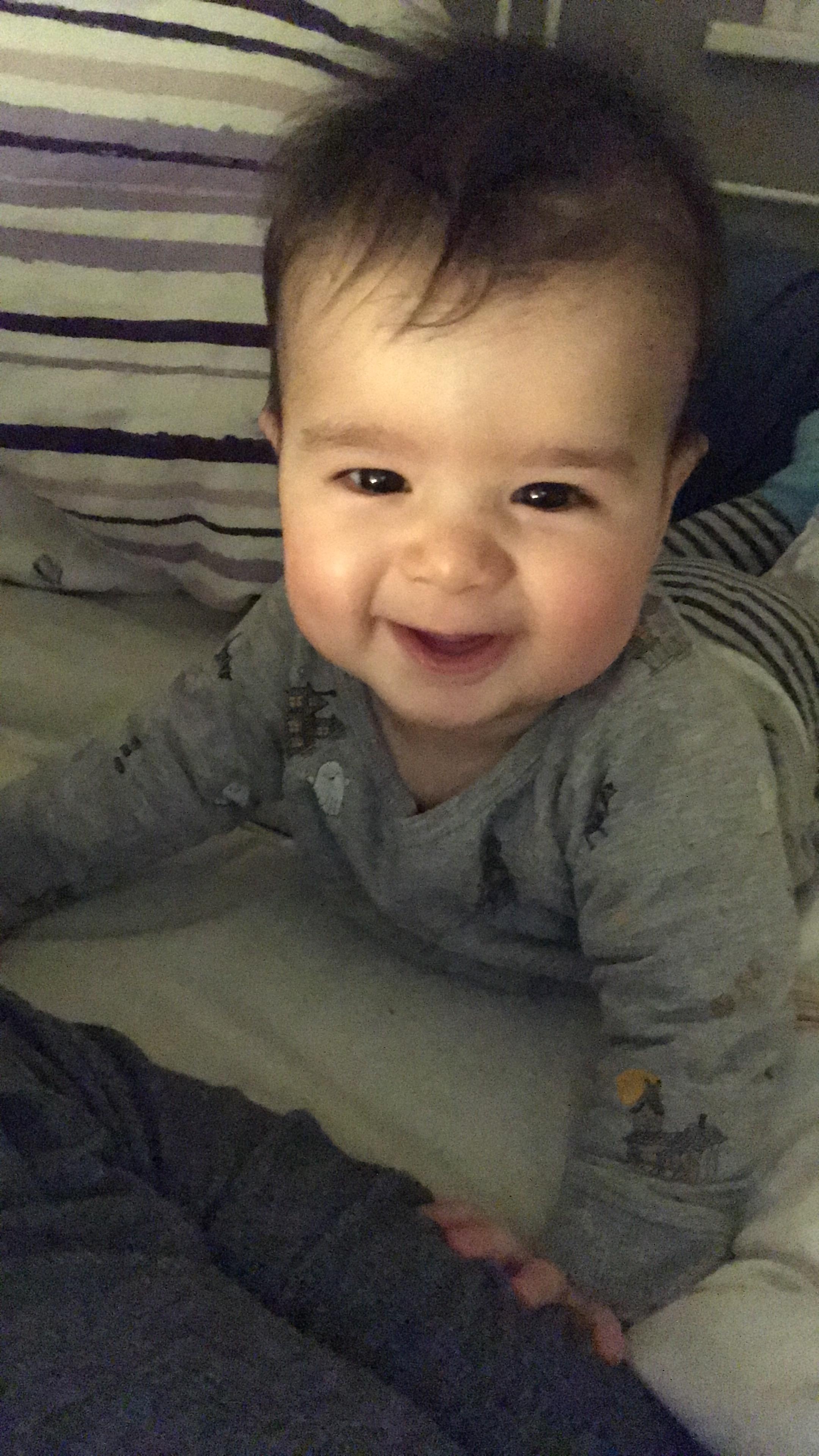 Mahir ist 8 Monate und 2 Wochen alt Er ist 75cm groß/klein und wiegt 9kilo