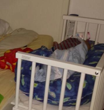 Weißes, eckiges Beistellbett