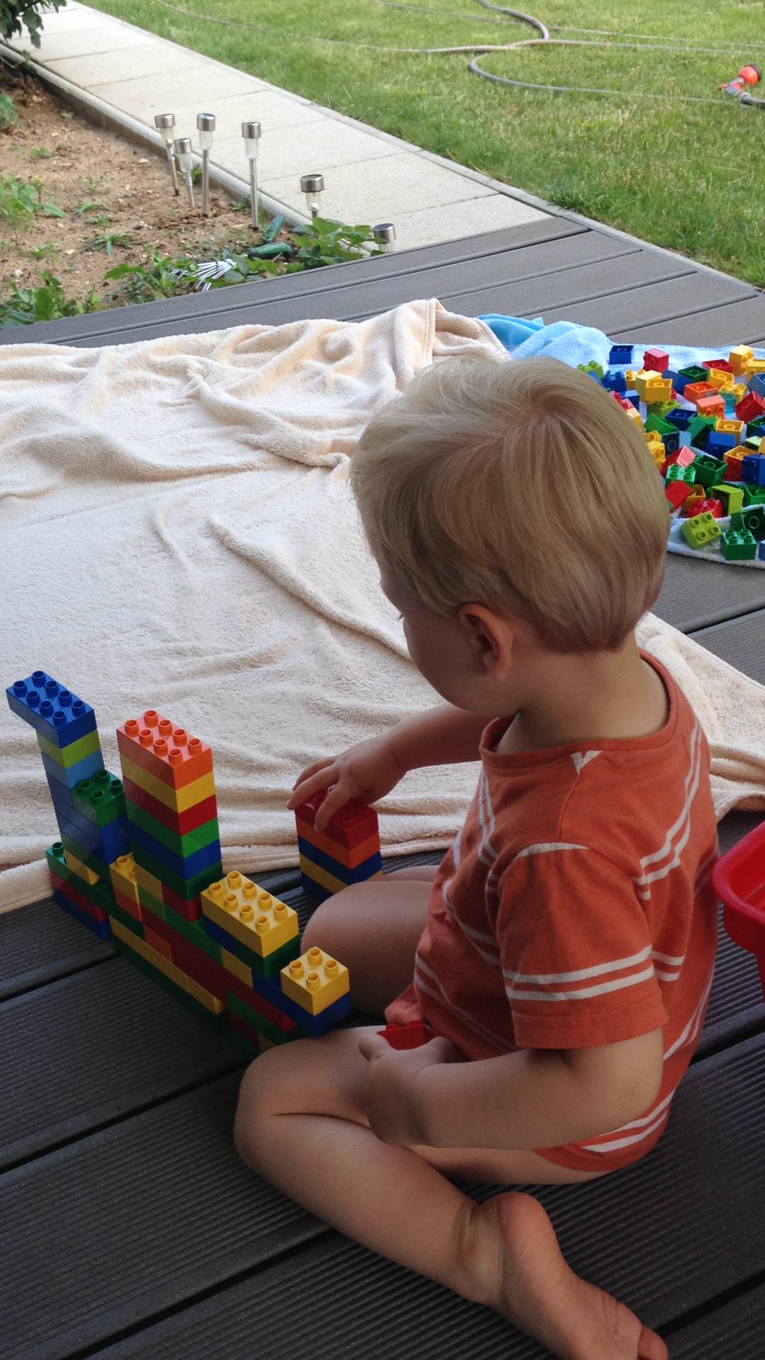 Unser Sohn ist fast zwei Jahre, bereit zu seinem 1. Geburtstag hat er Lego duplo geschenkt bekommen. Vor kurzem haben wir eine große Bestellung für Lego duplo steine aufgegeben die auch schnell eintraf. Er entdeckte den Riesen Korb kurz nach seinem Mittagsschlaf und fing direkt an drauf los zu bauen. Er beschäftigte sich erstmals über einen längeren Zeitraum alleine. Nun ist es so, sobald er aufwacht egal ob morgens oder ach dem Mittagsschlaf oder auch vor dem zu Bett gehen er unbedingt Lego spi