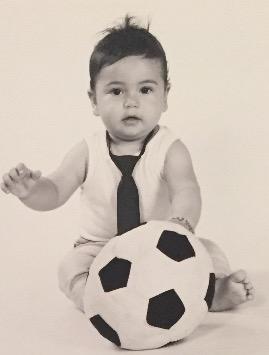 Krabbelt und spielt Fußball