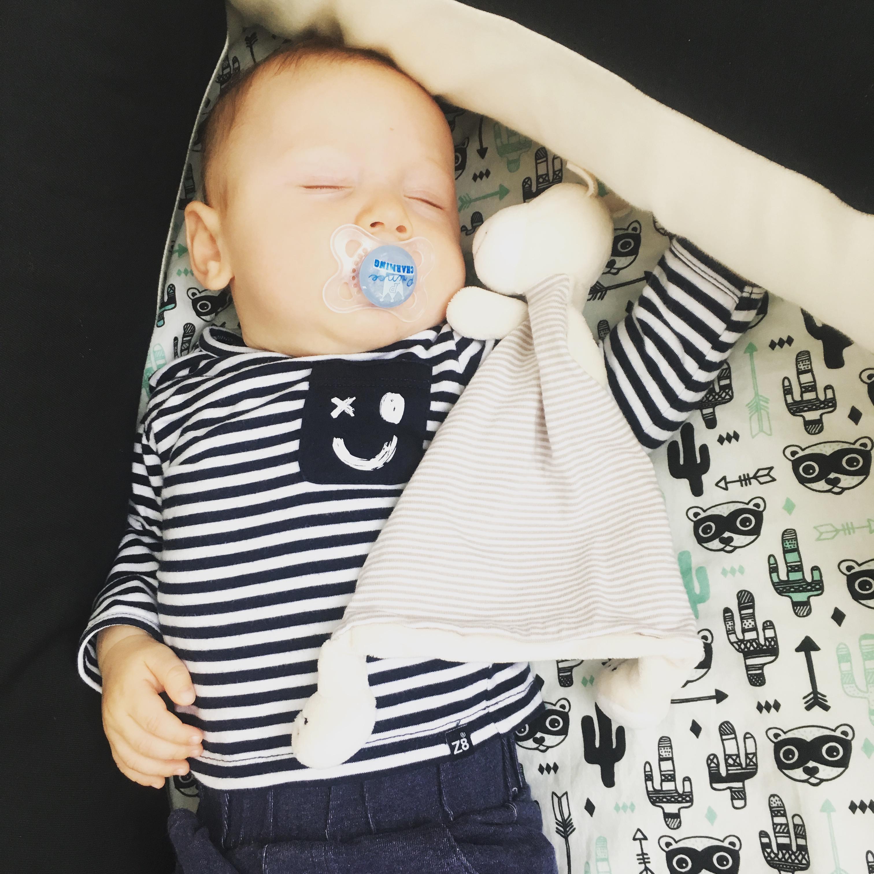 Henry ist Weltmeister im Schlafen. Mit seinem Schmusetier und Schnuller geht's noch viel besser.
