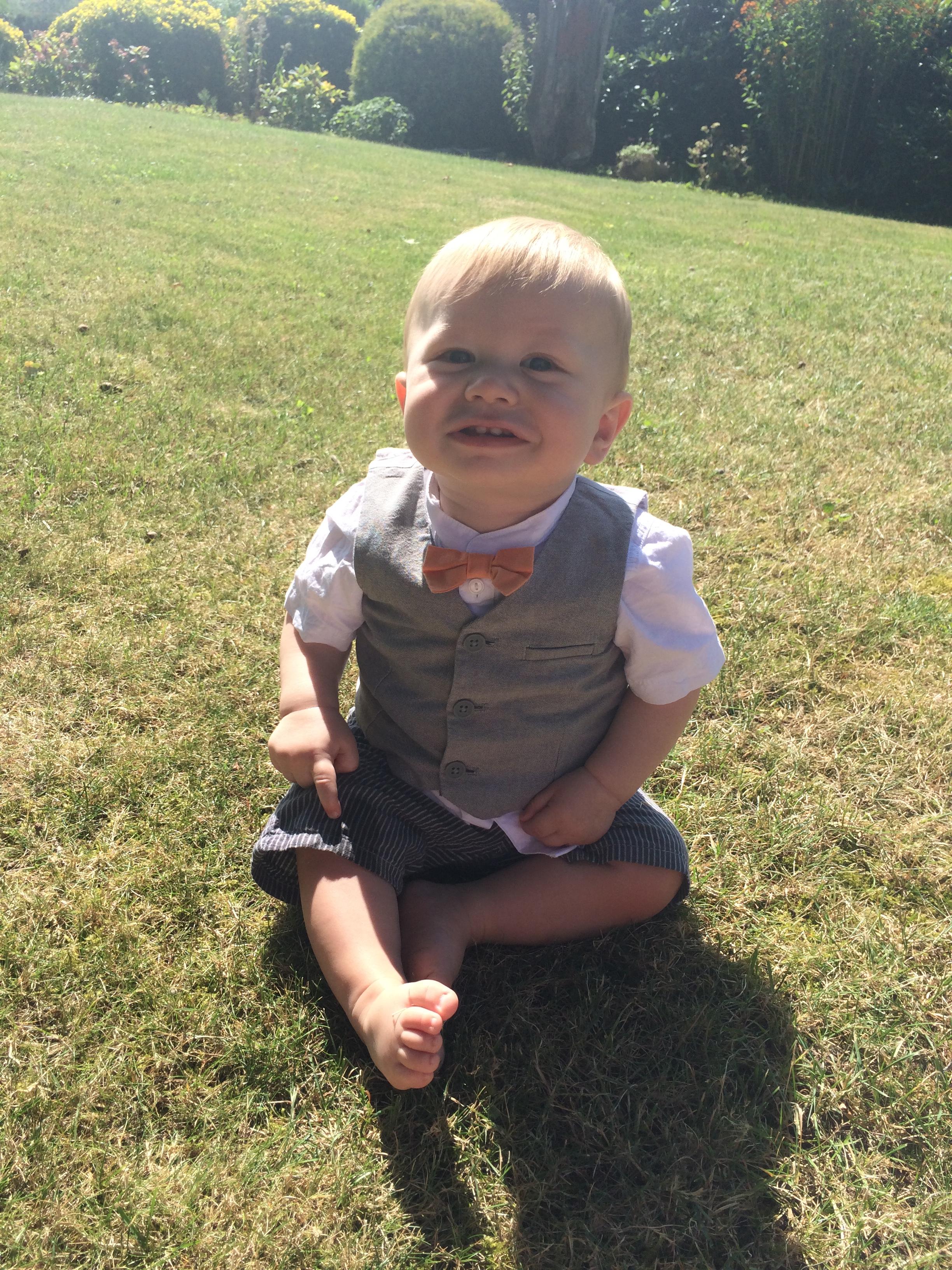 Julian auf einer Hochzeitsfeier letzten Monat. Schick in der Sonne :) Er ist 9 Monate alt.