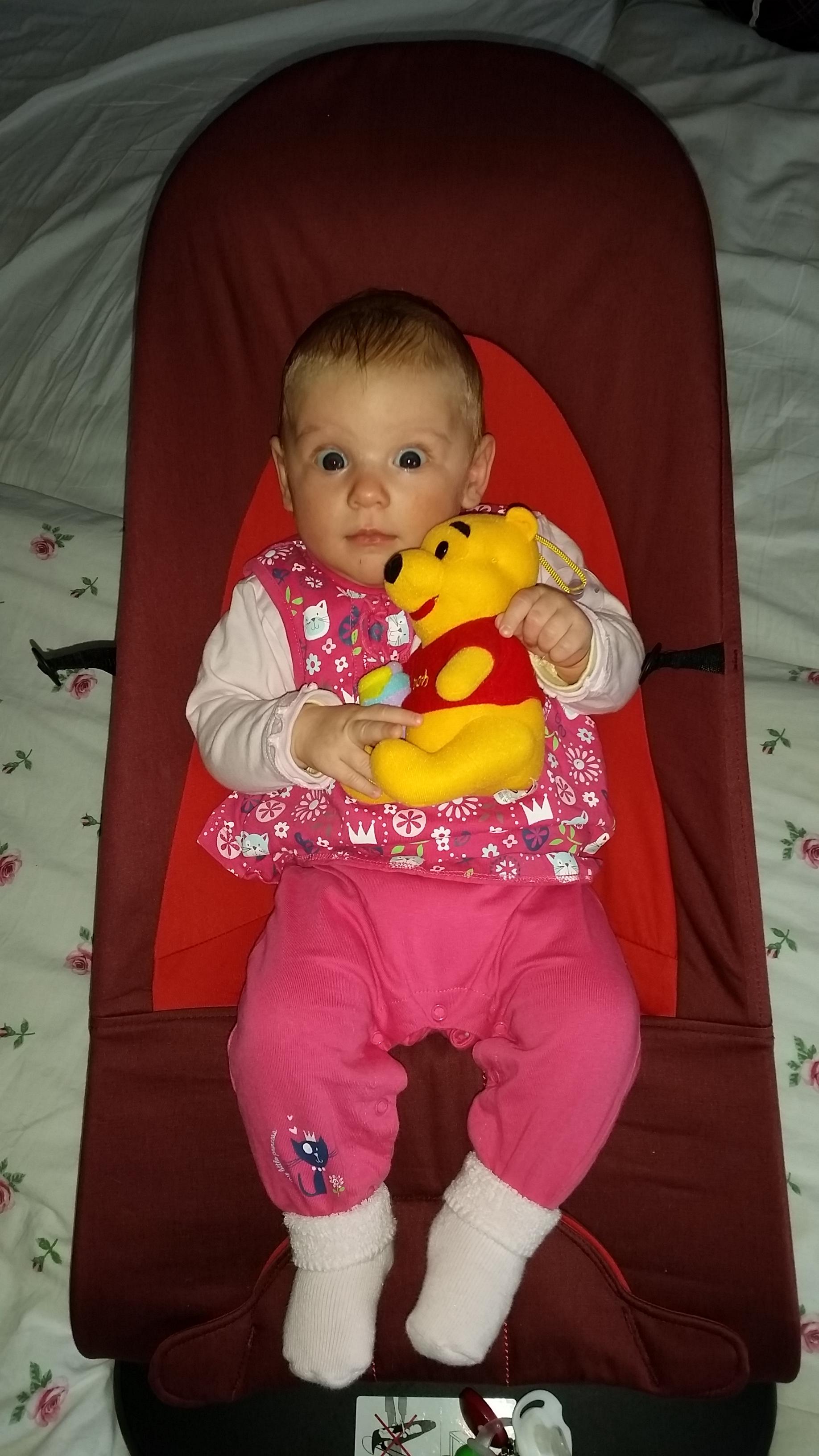 Wir haben von Geburt an alles auf Pooh. An den Wänden im Kinderzimmer, der Teppich, Ihre Klamotten, Schnuller und Kuscheltiere. Alles von Pooh, Ferkel & Co.