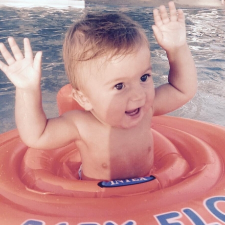 Mia liebt Baden und lacht dabei immer. Das...