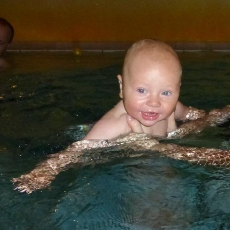 Mein Anton liebt da Wasser und er lächelt...