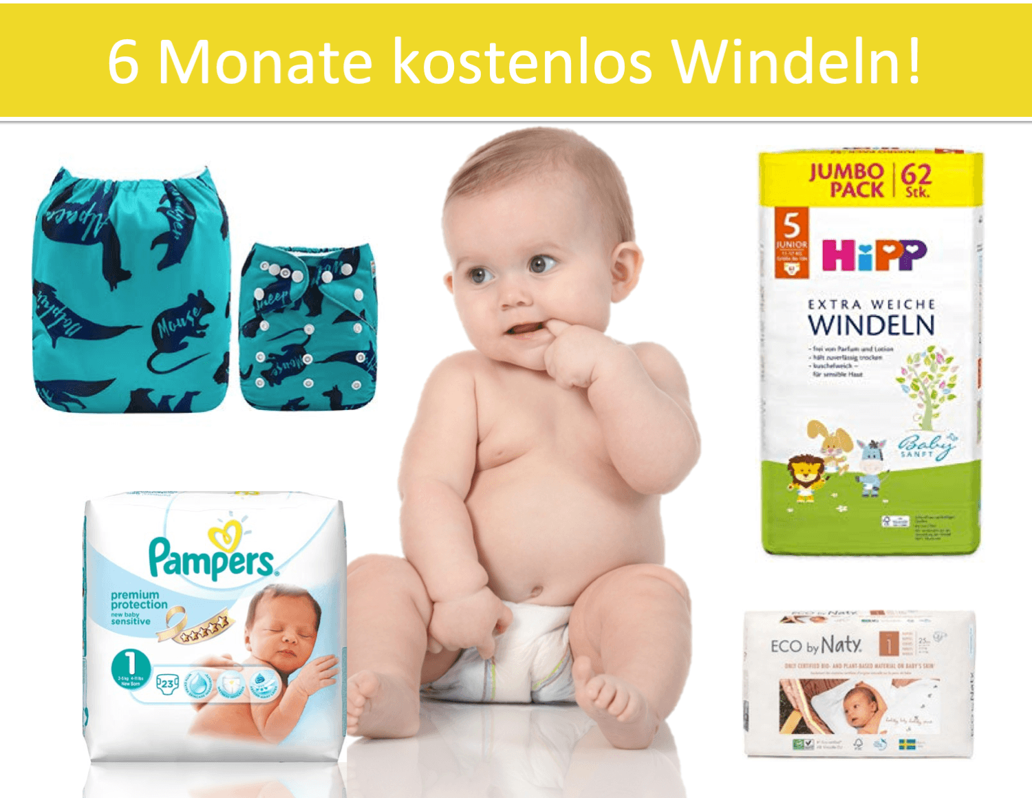 • Windelvorrat im Wert von 250€ für 6 Monate gewinnen