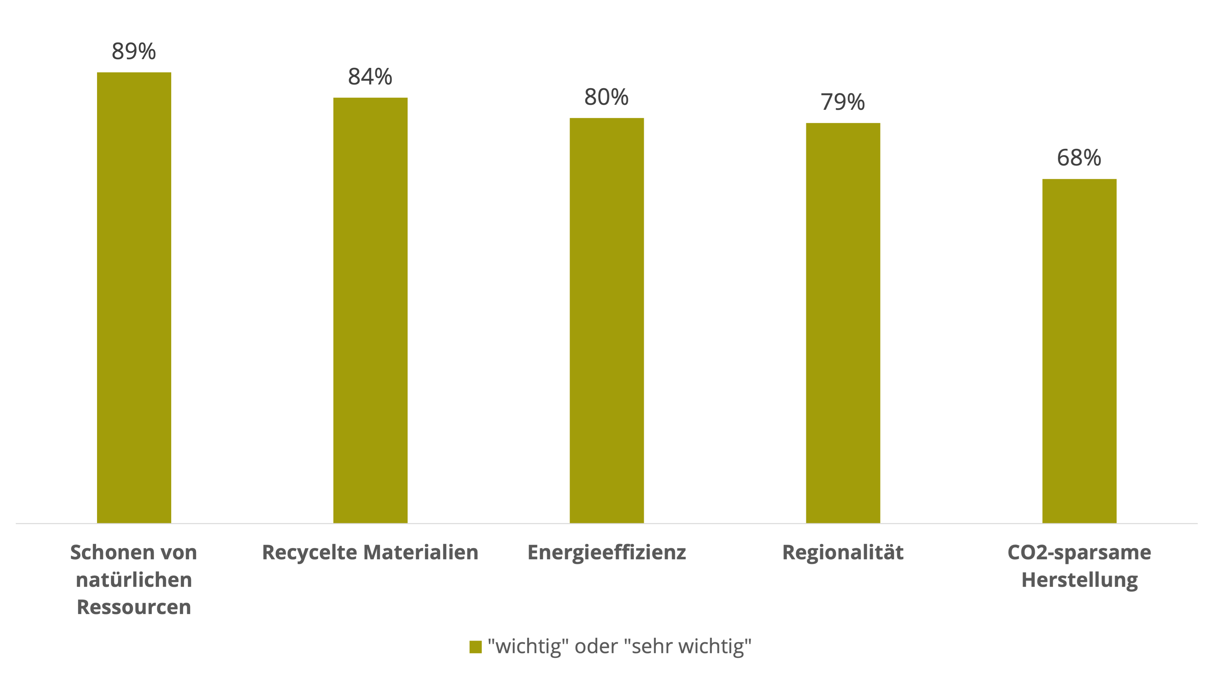 Schonen von natürlichen Ressourcen (zB. wenn eher nachwachsende Rohstoffe verwendet werden) ist „sehr wichtig“ oder „wichtig“: 89%