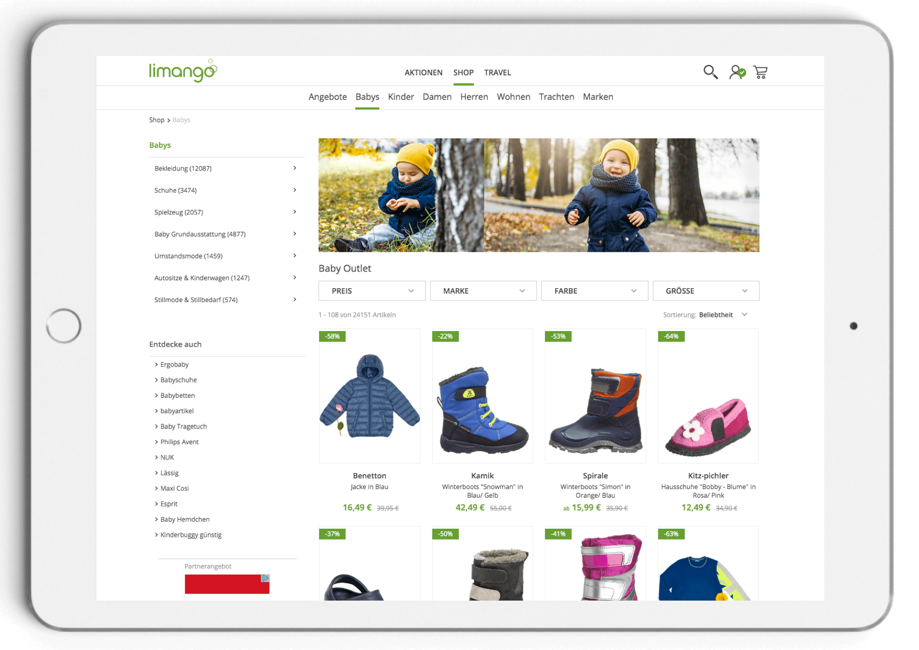 Jede fünfte Familie in Deutschland vertraut auf den Shopping Club ohne Verpflichtungen! Was Dich dort erwartet: Jede Menge Sales beliebter Marken wie Steiff, Sterntaler, Adidas, Finkid, Affenzahn, Birkenstock, Kanz, NUK und vielen mehr – alles bis zu 70% reduziert! Wie beliebt Limango ist? Vielleicht ist es für Dich interessant zu wissen, dass mehr als 4 Millionen Pakete pro Jahr versendet werden.