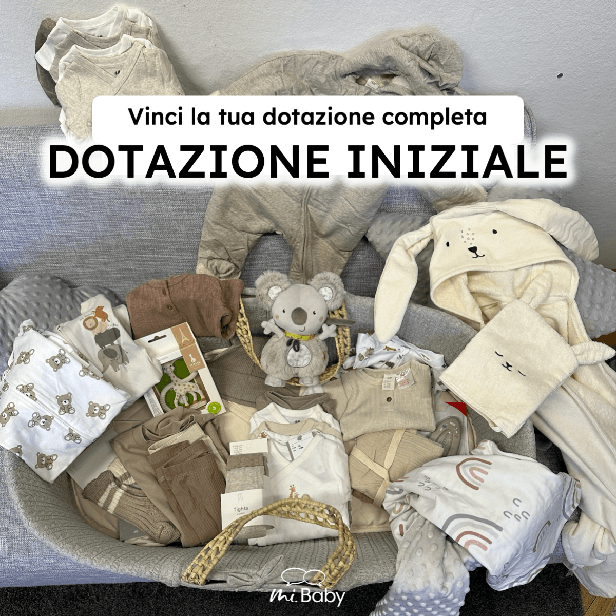 Il premio principale è la dotazione iniziale completa del valore di oltre 400€, con cestino Mosè, vestitini, accessori per la nanna e prodotti per la cura del bebè. Ogni settimana vengono messi in palio anche altri premi come cubetti sonori, seggioloni, pannolini per 6 mesi e molto altro!