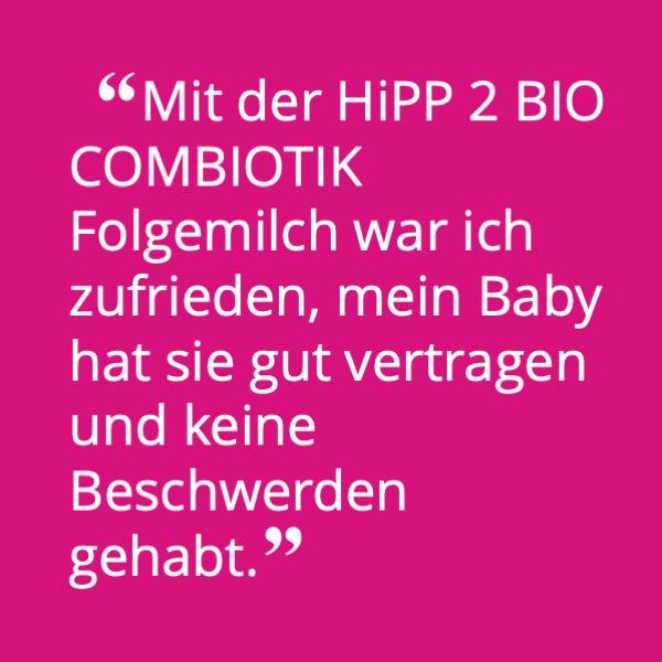 - Mehr als 90% würden die HiPP 2 Bio Combiotik® Folgemilch aufgrund der guten Erfahrungen aktiv weiterempfehlen.
