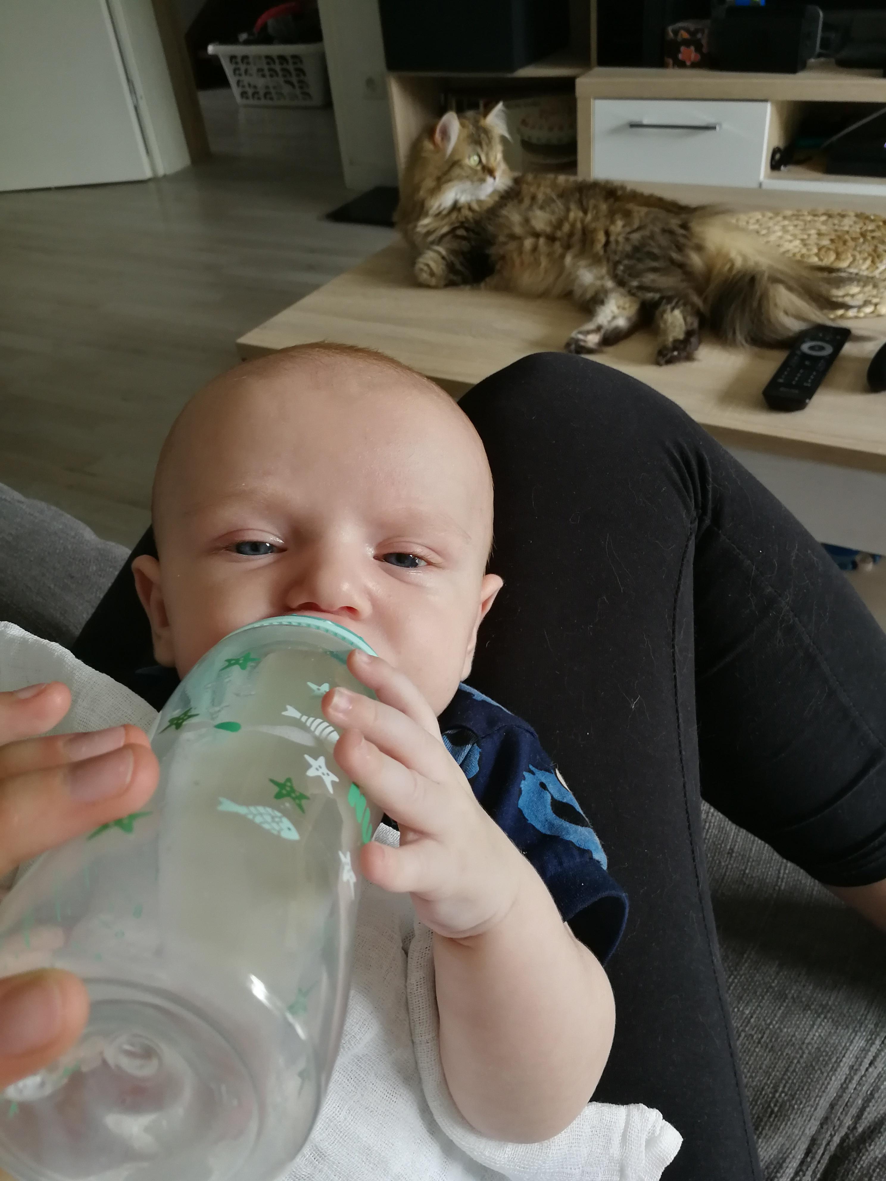 Dann kamen die eigentlichen Tester dran mit dem Geschmackstest. Wie schon gesagt - ob es eine Milch dauerhaft zu Euch nach Hause schafft, hängt letztendlich davon ab, ob sie Eurem Schatz schmeck! Oft kann es einige Zeit dauern, bis eine Milch gefällt. Die HiPP 2 Bio Combiotik® Folgemilch hat 85% der kleinen Tester/innen "sehr gut" oder ,,gut" geschmeckt! Dieses Ergebnis kann sich sehen lassen, wie ich finde. Unten in der Fotogalerie siehst Du übrigens, dass auch Papas und sogar größere Brüder den jüngsten Schatz der Familie füttern durften.