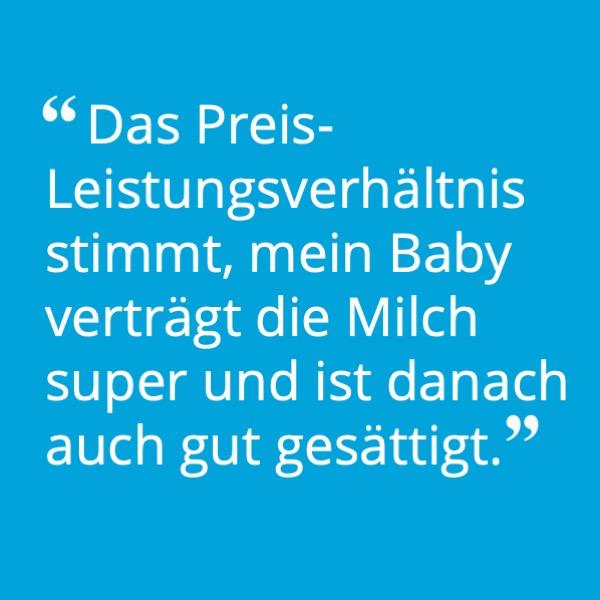 In puncto Verträglichkeit hat diese Milch einen sehr guter Wert erzielt: 94% der Babys haben die Folgemilch gut oder sehr gut vertragen, nur bei ein paar kam es zu ein wenig Blähungen.